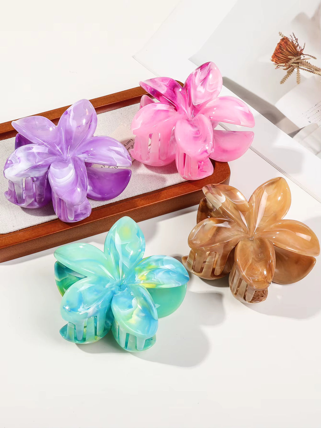 1.【Plumeria Flower Design】Plumeria flower hair clips are designed with unique plumeria flower shape, the versatile 3D plumeria flower hair claw clip is like a never-fading flower, well-made, colourful and realistic. Whether it's a ponytail, bun or draped hair, flower hair clips will be your go-to accessory for all kinds of outfits! Share these claw clips for thick hair with your friends!